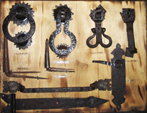 Disponemos de una gran variedad de herrajes de forja fabricados de forma artesanal para formar parte de muebles o puertas rústicas como son tiradores de puerta, aldabas, bisagras, cerrojos, clavos, cubrellaves, etc..